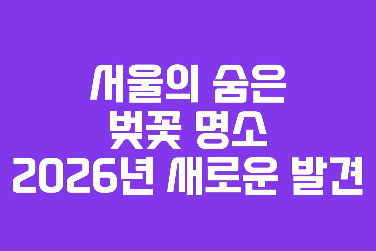 서울의 숨은 벚꽃 명소 2026년 새로운 발견