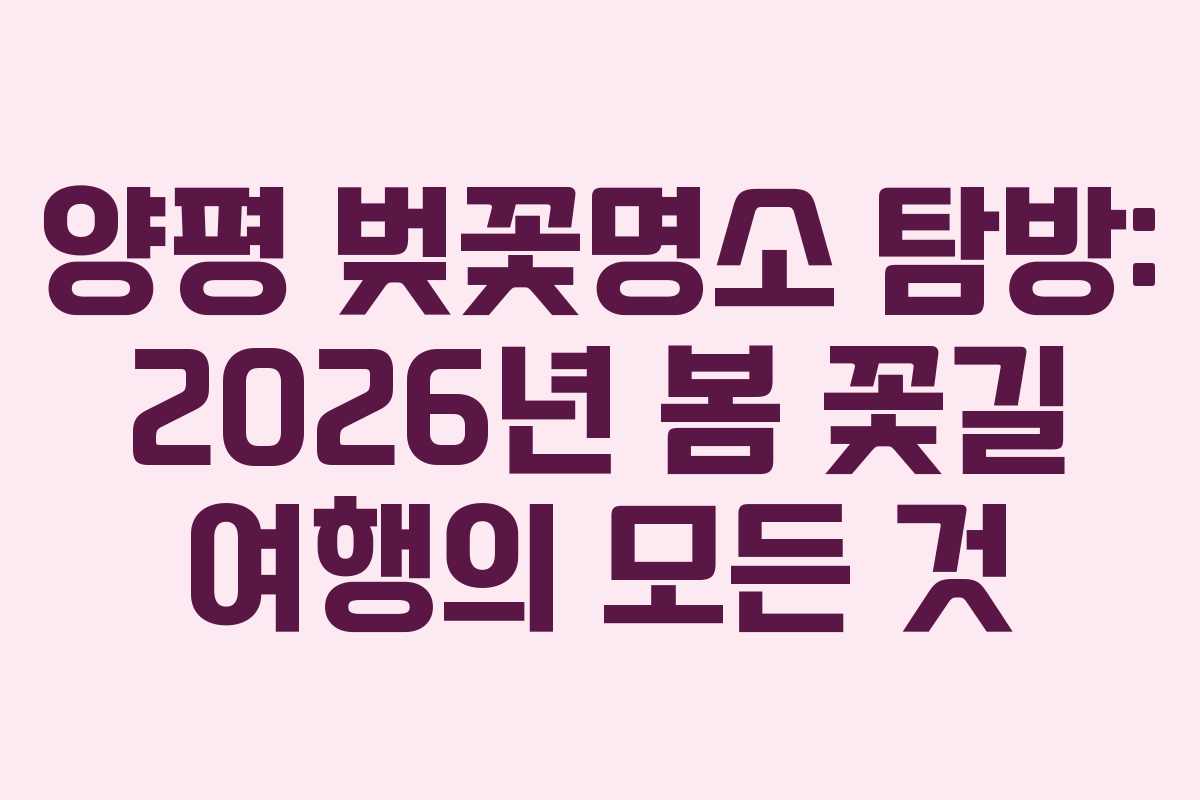 따뜻한 날씨가 찾아오면서 봄꽃이 피어나는 시기가 다가오고 있습니다. 특히 양평 지역은 벚꽃으로 유명한 곳으로, 매년 많은 관광객들이 이곳의 아름다운 벚꽃을 보기 위해 찾아옵니다. 2026년에는 어떤 벚꽃명소가 있는지, 그리고 벚꽃 개화시기는 언제인지 알아보겠습니다. 양평을 방문할 계획이 있다면 이 시기에 맞춰 여행 일정을 세워보는 것도 좋을 것입니다.