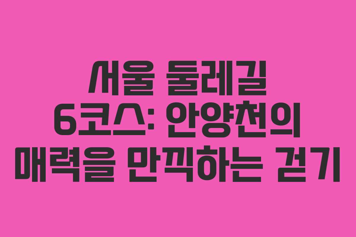 서울 둘레길 6코스는 도심 속에서 자연을 만끽할 수 있는 매력적인 도보 코스입니다. 안양천을 따라 펼쳐진 이 길은 평탄한 지형 덕분에 걷기에 부담이 없으며, 다양한 풍경을 즐길 수 있는 기회를 제공합니다. 이번 글에서는 서울 둘레길 6코스를 자세히 살펴보겠습니다.