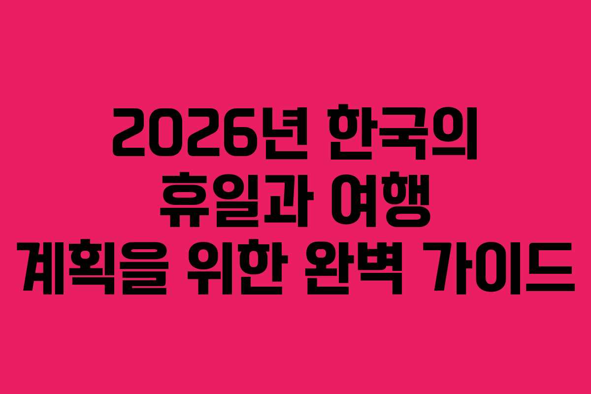 2026년 한국의 휴일과 여행 계획을 위한 완벽 가이드