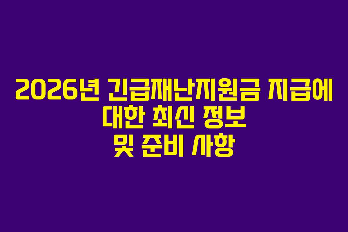 2026년 긴급재난지원금 지급에 대한 최신 정보 및 준비 사항