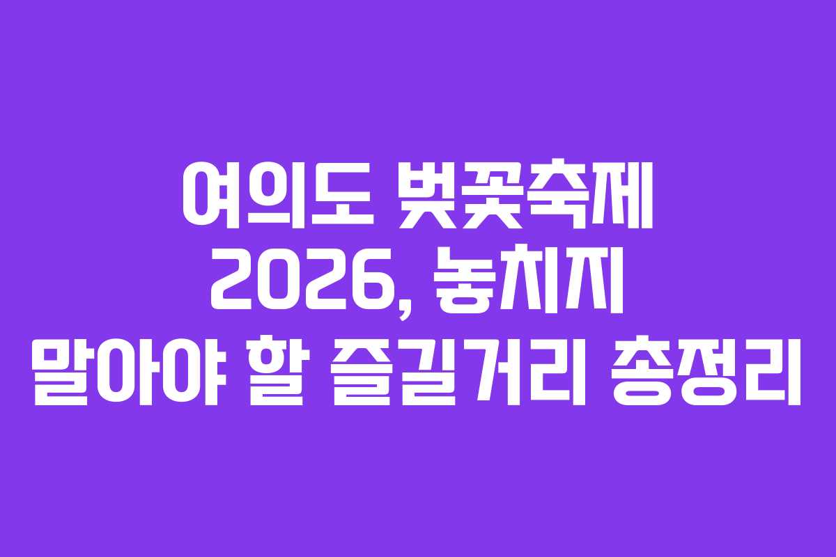 여의도 벚꽃축제는 단순한 꽃 구경을 넘어 다양한 프로그램과 볼거리를 제공합니다. 축제 기간 동안 많은 사람들과 함께하는 즐거운 순간을 만끽하고, 봄의 정취를 마음껏 느껴보세요. 2026년에도 여의도에서 잊지 못할 추억을 만들어보시기 바랍니다.