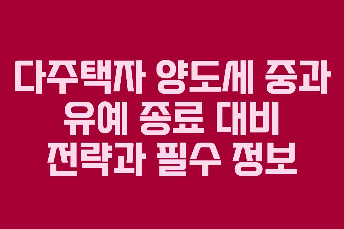 다주택자 양도세 중과 유예 종료 대비를 위한 구체적인 전략