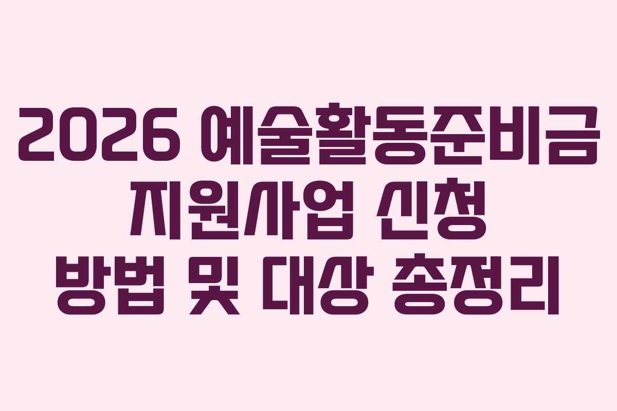 예술인들이 지속적으로 창작 활동을 이어나갈 수 있도록 돕는 예술활동준비금 지원사업이 2026년에도 시행됩니다. 이번 지원사업은 보다 강화된 조건으로 제공되며, 신청 시기를 놓치지 않도록 자격 요건과 필요한 서류를 미리 점검하는 것이 중요합니다. 본 가이드는 2026년 기준으로 예술활동준비금의 신청 방법과 대상에 대해 상세히 안내합니다.
