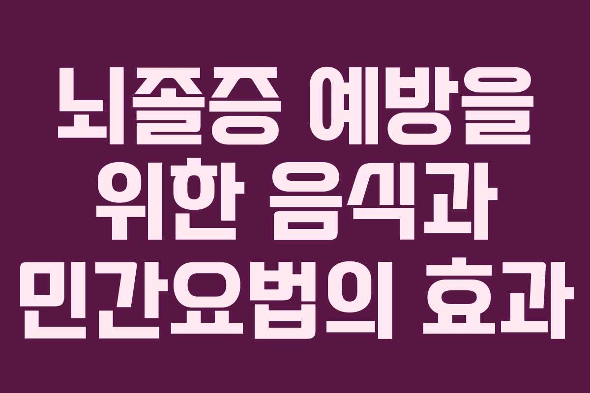 한국 전통 의학에서는 여러 가지 약초와 자연 재료를 활용한 민간요법이 뇌졸증 예방에 효과적이라고 알려져 있다. 제시되는 몇 가지 민간요법은 다음과 같다.
