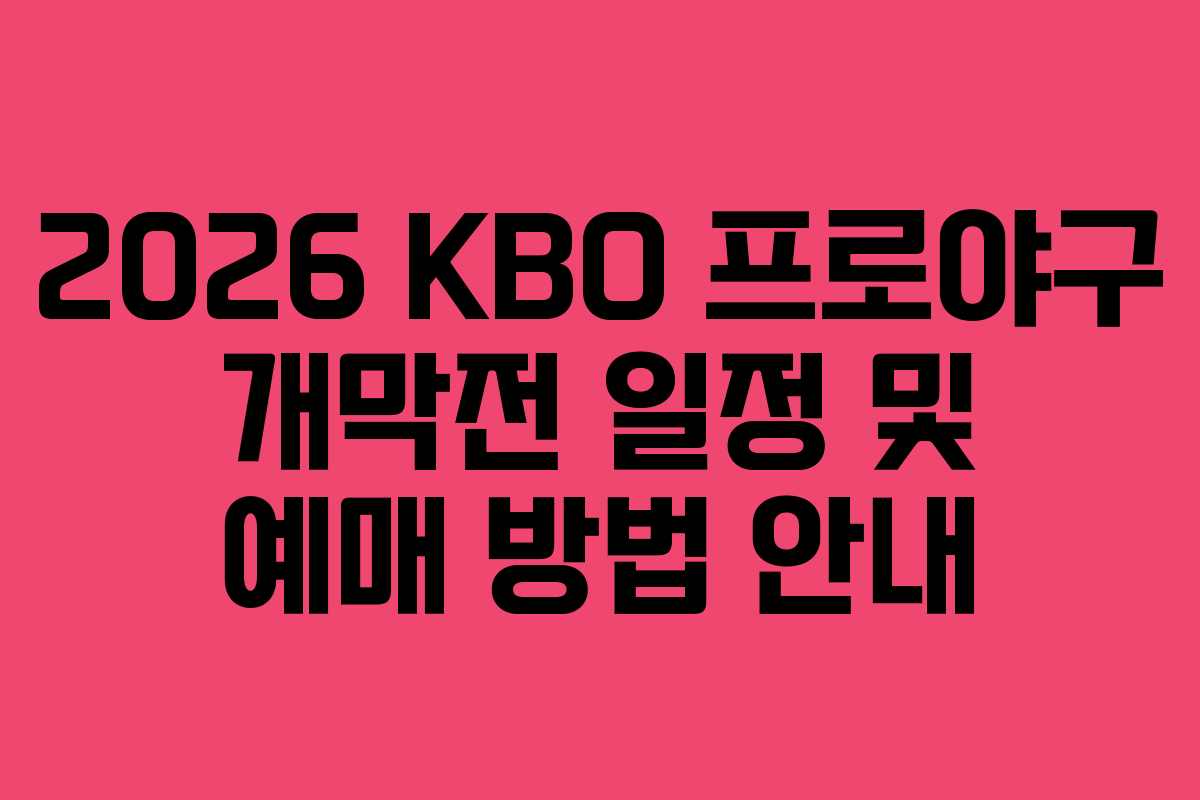 2026 KBO 프로야구 중계 및 예매 방법