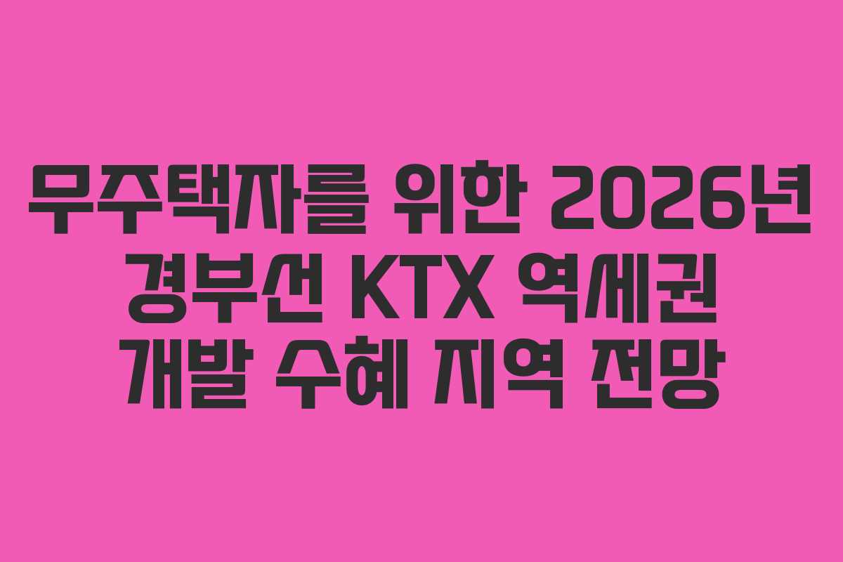 무주택자를 위한 2026년 경부선 KTX 역세권 개발 수혜 지역 전망
