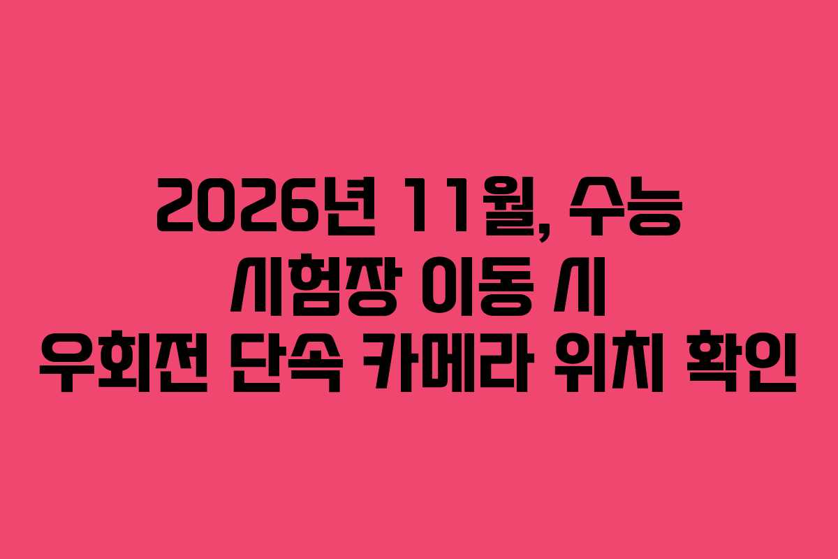 2026년 11월 수능 시험장을 향한 이동은 수험생에게 있어 매우 중요한 과정입니다. 우회전 단속 카메라의 위치를 사전에 확인하고, 안전하게 이동하기 위한 방법을 모색하는 것은 수험생의 심리적 안정에도 큰 도움이 될 것입니다. 수능 당일, 모든 수험생이 자신의 최선을 다할 수 있도록 준비하고, 안전하게 시험장에 도착할 수 있기를 바랍니다.