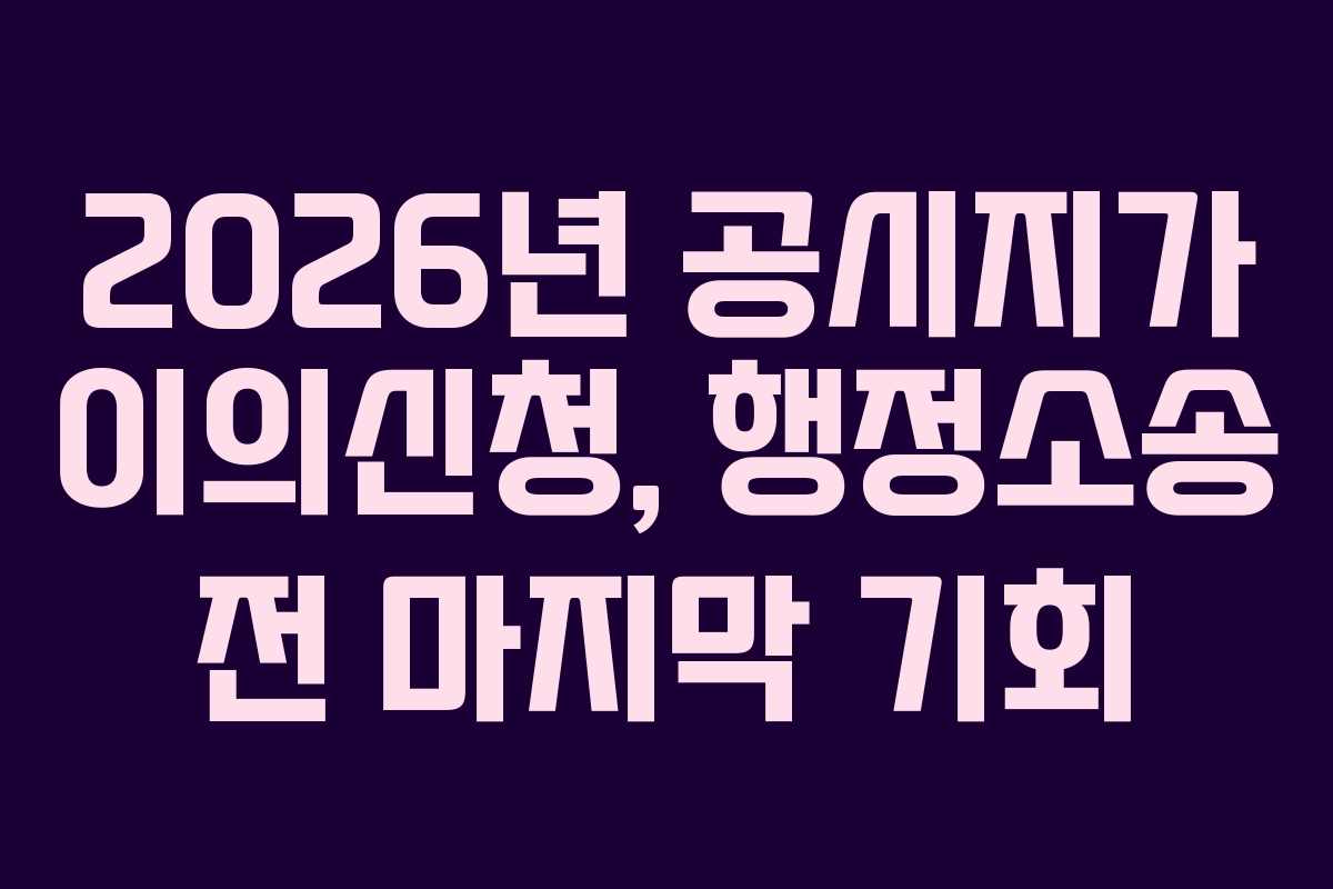 2026년 4월 30일부터 5월 29일 사이에 개별공시지가에 대한 이의신청을 할 수 있습니다. 이의신청을 통해 공시지가가 부당하게 책정된 경우, 조정 가격을 요청할 수 있는 기회를 가지게 됩니다. 제가 작년에 이의신청을 진행했을 때, 이 기한을 놓쳐서는 안 된다는 점을 절실히 깨달았습니다. 그 경험을 통해 여러분께도 이 점을 강조하고 싶습니다.