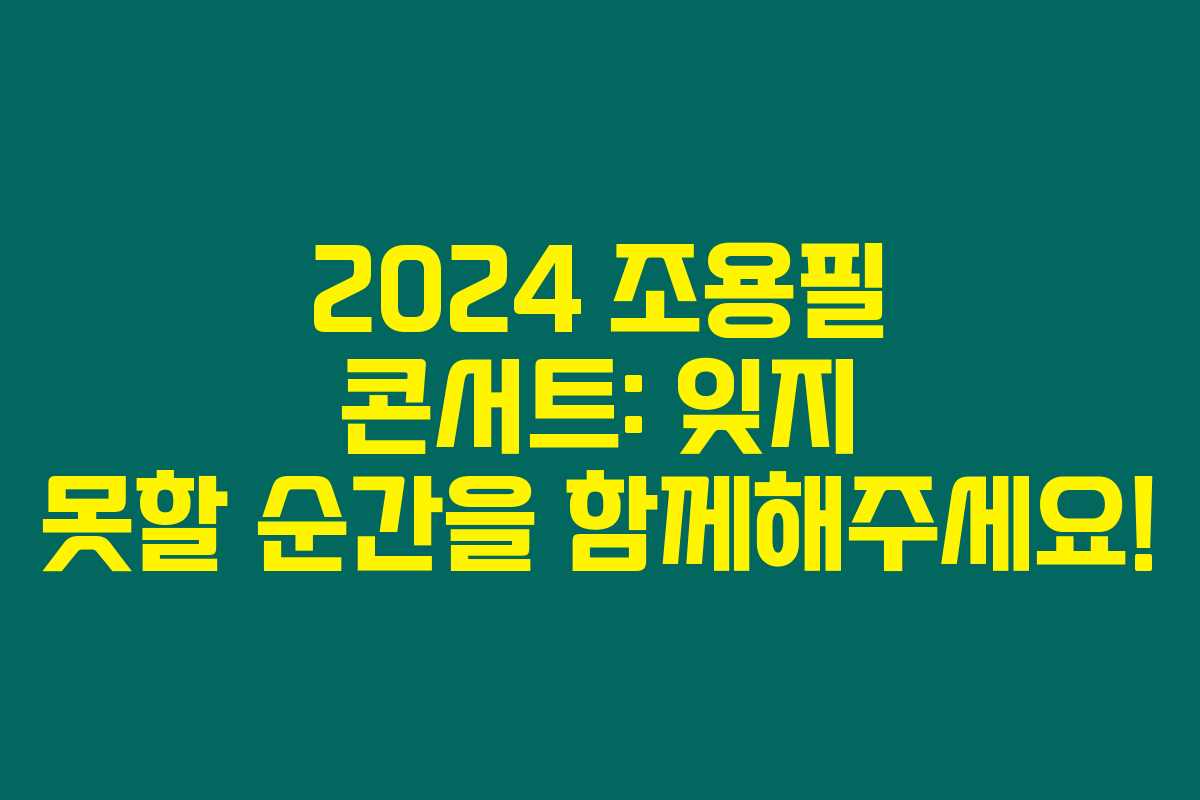 조용필 콘서트 티켓팅은 매번 치열한 경쟁을 불러일으킵니다. 그럼에도 불구하고, 철저한 준비만이 티켓팅 성공의 열쇠에요! 아래에서 꼭 확인하세요.