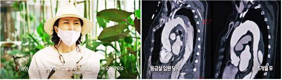 67세 서일윤 씨는 가슴이 찢어질 듯한 통증으로 응급실에 가야 했습니다. 진단은 대동맥 박리와 그에 따른 대동맥류였습니다. 높아진 혈압이 대동맥의 내벽을 찢어 혈액이 새어 나오는 위험한 질환이었습니다. 20년 전 고혈압 진단을 받았지만, 처방받은 약을 게을리해서 이런 결과를 초래한 것입니다.