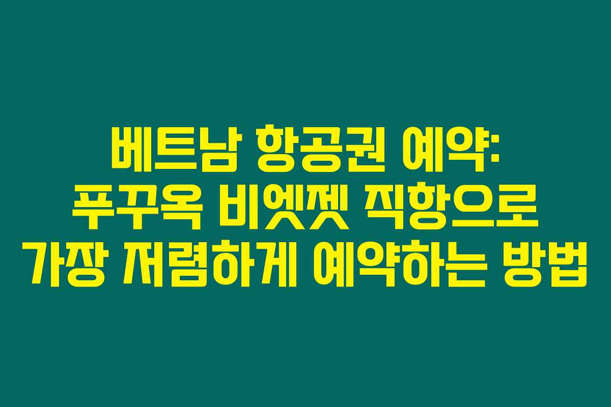 여행를 준비 중이신가요? 특히 베트남으로의 여행이 매력적인 요즘이죠. 그런데 비행기표 예약으로 고민하고 계시다구요? 그렇다면, 푸꾸옥행 비엣젯 직항으로 저렴하게 예약하는 방법을 아래를 읽어보시면 쉽게 확인할 수 있습니다.