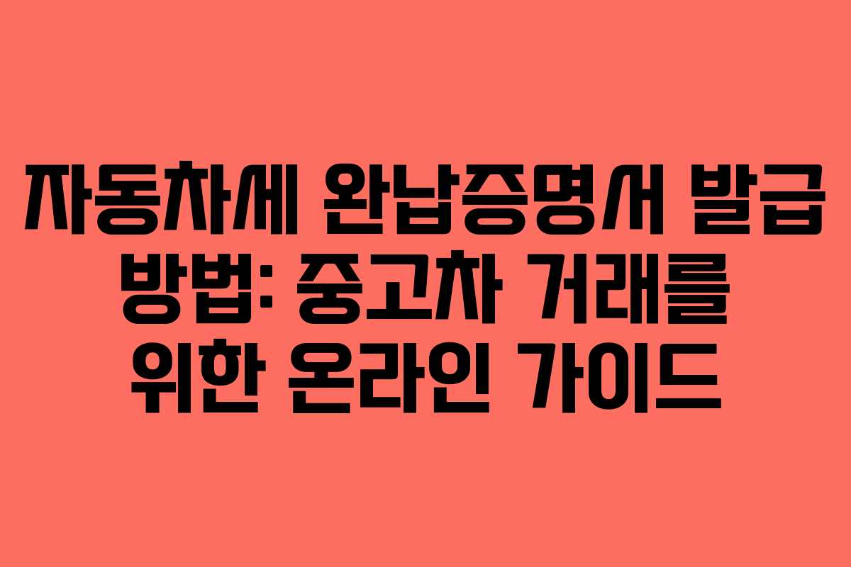 아래를 읽어보시면 온라인으로 자동차세 완납증명서를 발급받는 전체 흐름과 주의사항, 필요한 정보, 출력 및 보관 팁까지 한 번에 정리합니다. 중고차 거래의 신뢰성과 안전성을 높이는 핵심 서류 준비법을 제시합니다.