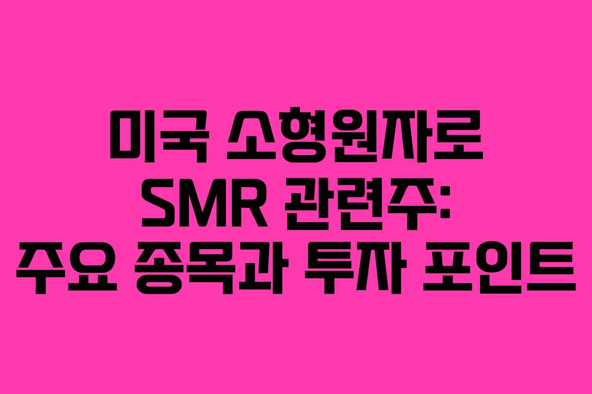 키워드: 미국 소형원자로 SMR, SMR 관련주, NuScale Power, BWX Technologies, Fluor Corporation, Cameco Corporation, Westinghouse Electric Company, TerraPower, Natrium 원자로, 원전 연료 공급, 에너지 정책과 규제,