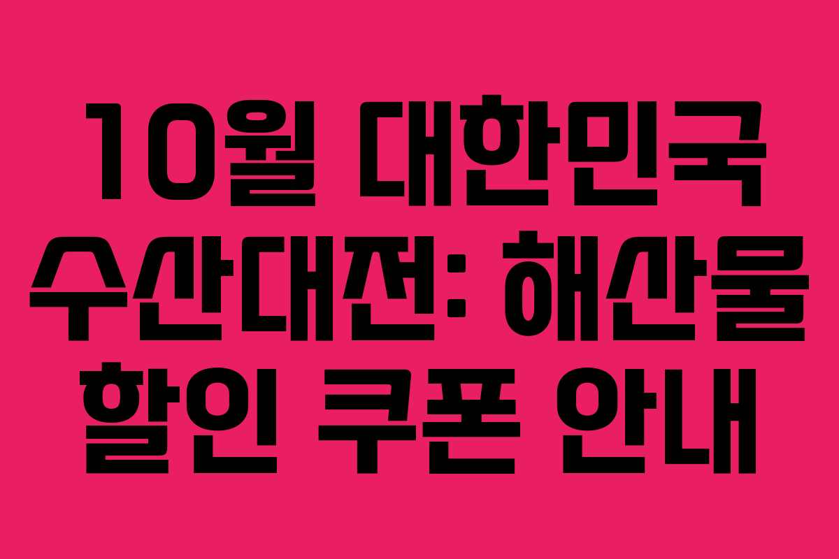 10월은 해양수산부가 주관하는 대한민국 수산대전이 열리는 특별한 달입니다. 이번 행사에서는 최대 60% 할인된 가격으로 해산물을 구매할 수 있는 기회를 제공합니다. 다양한 마트와 온라인 몰에서 저렴한 가격으로 신선한 해산물을 만나보세요.