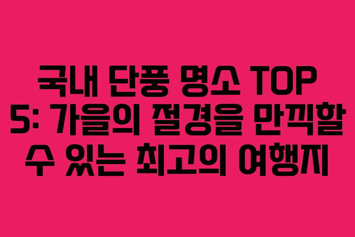 가을이 되면 대한민국의 아름다운 풍경을 만끽할 수 있는 단풍 명소가 많이 있습니다. 이번 글에서는 가을 단풍을 즐기기에 최적의 장소 5곳을 소개합니다. 이곳들은 특히 사진으로도 아름답지만, 직접 방문하면 더욱 감동적인 경험을 제공합니다.