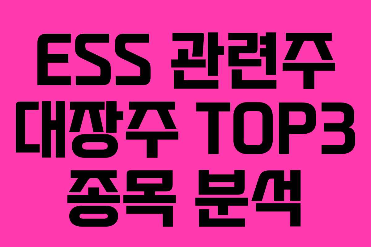 에너지 저장 시스템(ESS)은 전력의 효율적 사용과 안정적 공급을 위해 필수적인 기술로, 특히 재생에너지의 변동성을 보완하는 중요한 역할을 하고 있습니다. 이번 글에서는 ESS 관련주 중에서 특히 주목할 만한 대장주 3종목을 정리해 보겠습니다.