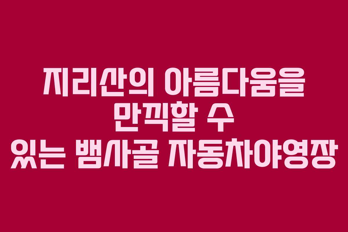 뱀사골 자동차야영장에서는 캠핑, 하이킹, 계곡 탐방 등 다양한 야외 활동을 즐길 수 있습니다. 자연 속에서 힐링할 수 있는 기회를 제공합니다.