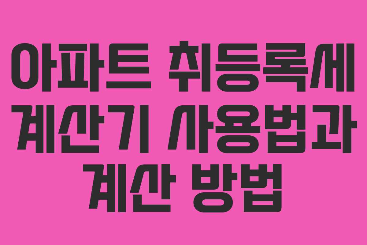 아파트를 구매할 때 발생하는 비용 중 하나인 취등록세는 주택을 포함한 여러 자산을 취득할 때 부과되는 세금입니다. 취등록세는 취득세와 등록세를 포함하는 개념으로 이해할 수 있습니다. 본 글에서는 아파트 취등록세 계산기를 사용하는 방법과 직접 계산하는 방법에 대해 자세히 알아보겠습니다.