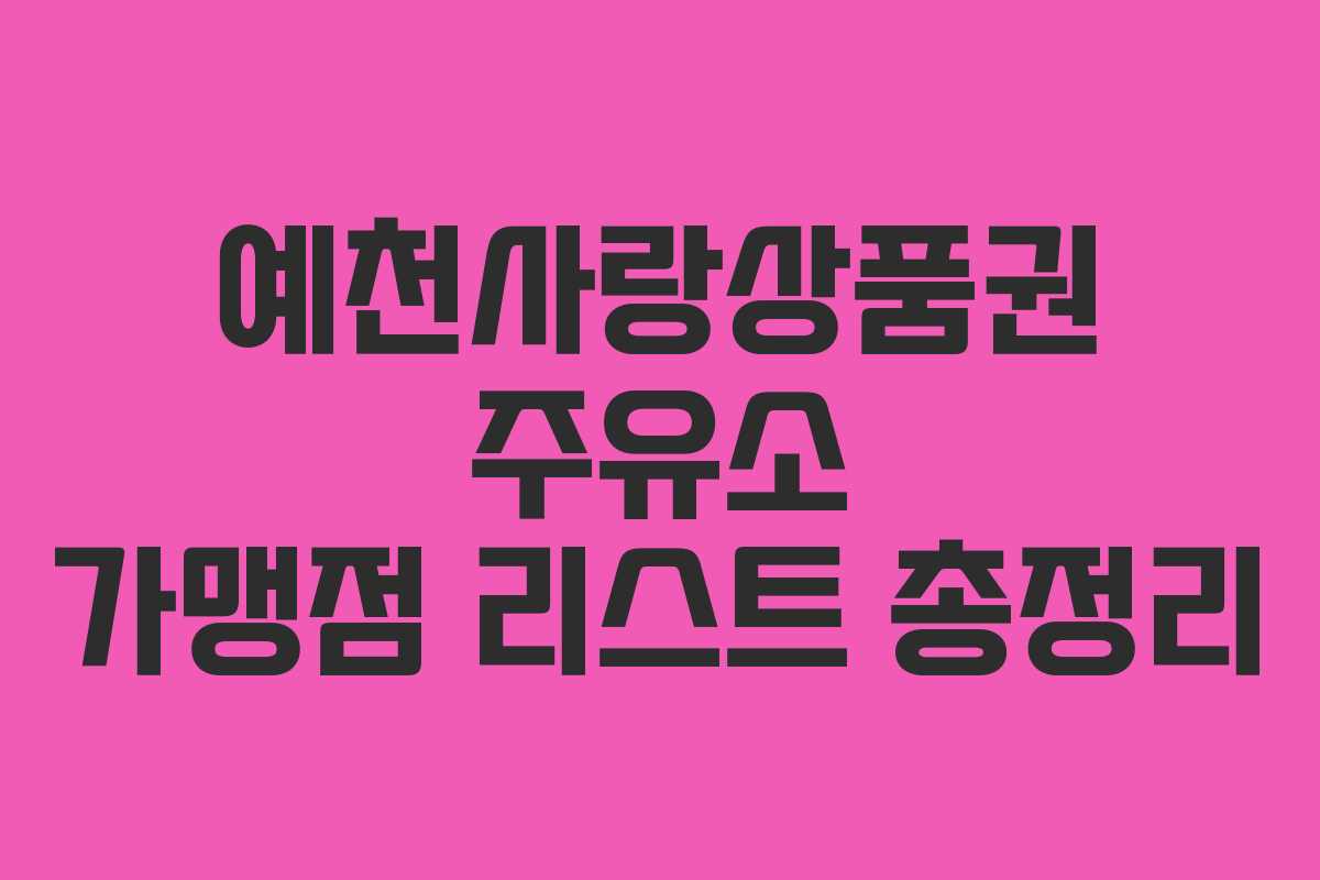 예천사랑상품권은 예천군 주민들에게 주유비 절약을 위한 유용한 수단입니다. 하지만 모든 주유소에서 사용할 수 있는 것은 아니므로, 가맹점 정보를 사전에 확인하는 것이 중요합니다. 이 글에서는 예천사랑상품권을 사용할 수 있는 주유소의 리스트와 활용 팁을 안내드립니다.