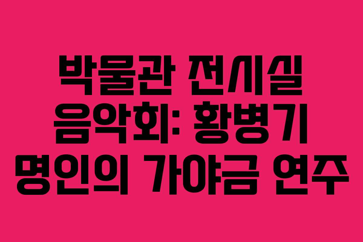 국립중앙박물관에서 특별한 음악회가 열립니다. 이 음악회에서는 한국 불교조각의 아름다움을 감상하며 세계적인 가야금 명인 황병기의 연주를 직접 들을 수 있는 기회입니다.