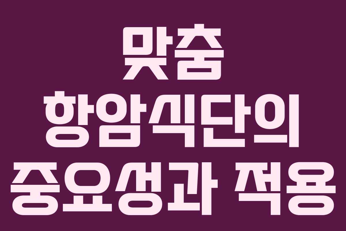 항암식단은 다양한 영양소가 균형 있게 포함되어야 합니다. 단백질, 비타민, 미네랄 등이 풍부한 식품을 섭취함으로써 체력을 유지하고 면역력을 강화할 수 있습니다.