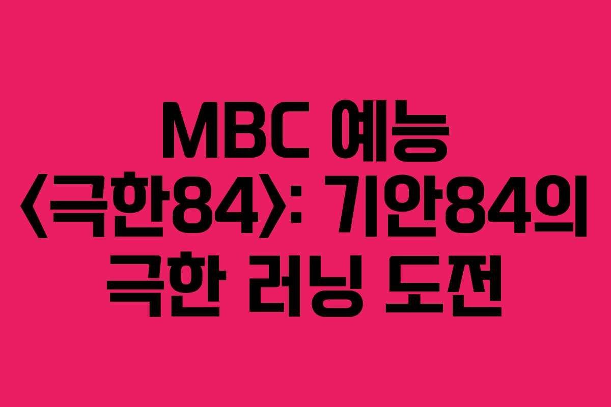 2025년 11월 30일, MBC에서 방영될 새로운 예능 프로그램 <극한84>는 웹툰 작가이자 예능인인 기안84가 펼치는 극한의 러닝 도전을 담고 있습니다. 이 프로그램은 단순한 스포츠 예능을 넘어서, 개인의 한계를 시험하고 극복하는 과정을 진솔하게 보여줄 예정입니다.