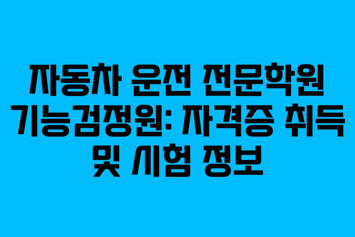 자동차 운전 전문학원 기능검정원은 운전 교육의 전문 인력을 양성하기 위한 제도로, 자격증 취득 후 교육, 시험 및 감독 등의 역할을 수행합니다. 이 자격증은 운전 교육 분야에서 필수적인 요소로 자리잡고 있으며, 취득을 원하는 이들을 위한 다양한 정보가 필요합니다.