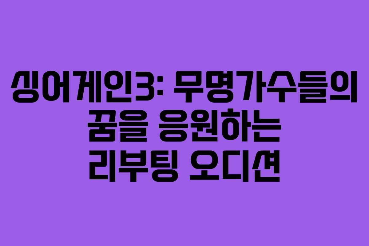 싱어게인3는 무명가수들이 자신의 꿈을 펼칠 수 있는 기회를 제공하는 오디션 프로그램입니다. 각 참가자는 다양한 미션을 통해 실력을 평가받고, 최종 우승자는 전국투어 콘서트에 참여할 기회를 얻습니다.