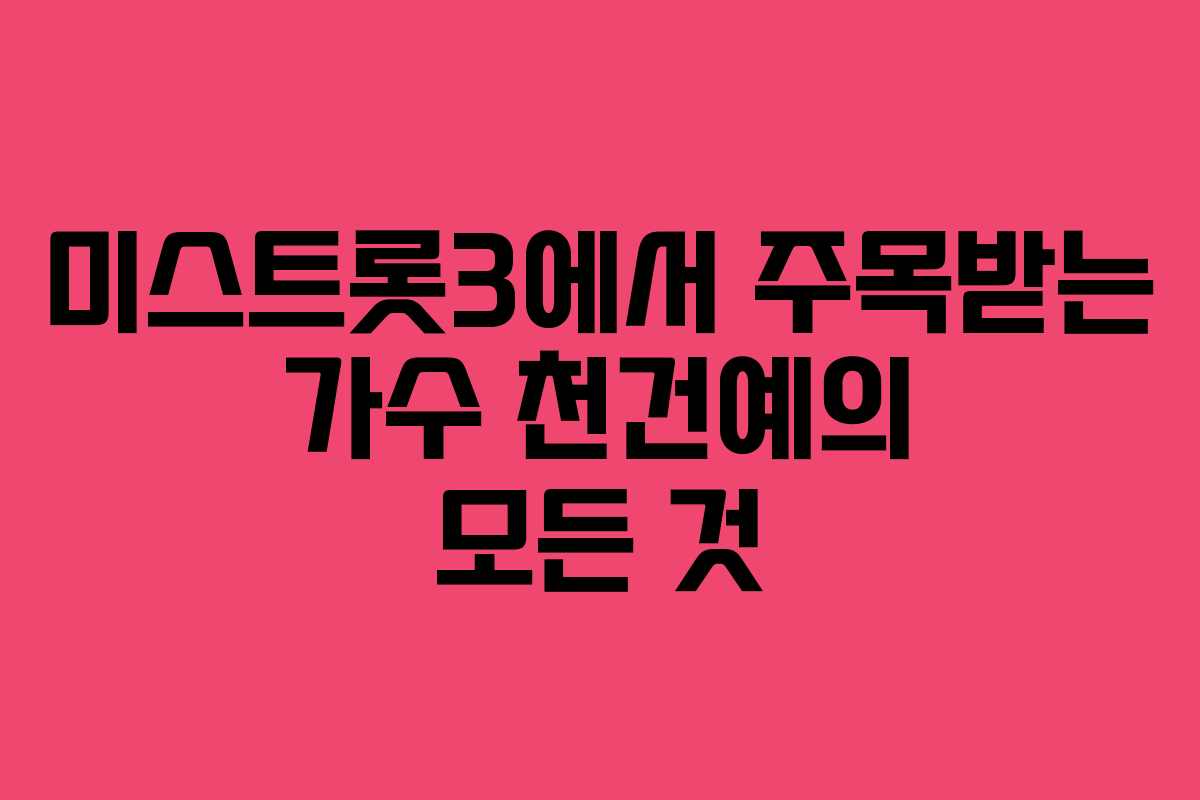 지금까지 미스트롯3 참가자 천건예에 대한 정보를 정리하였다. 앞으로 그녀의 활동이 어떤 방향으로 흘러갈지 지켜보는 것은 많은 이들에게 흥미로운 일이다.