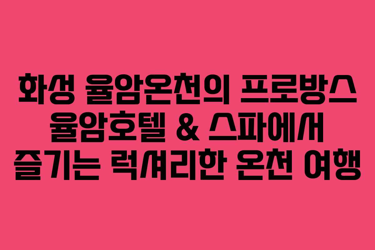 이 글에서는 프로방스 율암호텔 & 스파의 특징과 함께 예약 방법, 요금 정보를 상세히 안내합니다. 율암온천에서 즐거운 시간을 보내기 위해 필요한 모든 정보를 제공하니, 참고하시기 바랍니다.