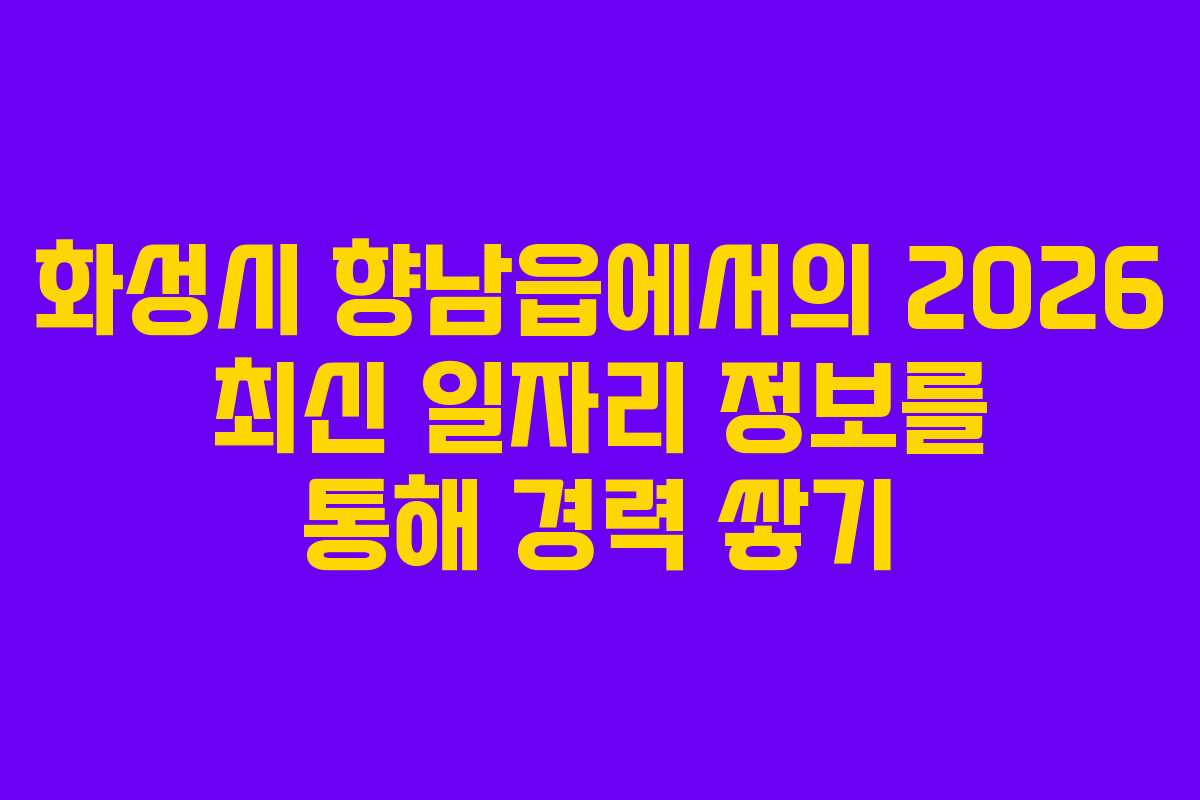 2025년 화성시 향남읍의 채용정보를 제공하는 것은 구직자들에게 매우 중요하다. 고용센터, 사람인, 잡코리아, 알바몬, 알바천국 등의 플랫폼을 통해 신뢰할 수 있는 정보를 확인할 수 있다.