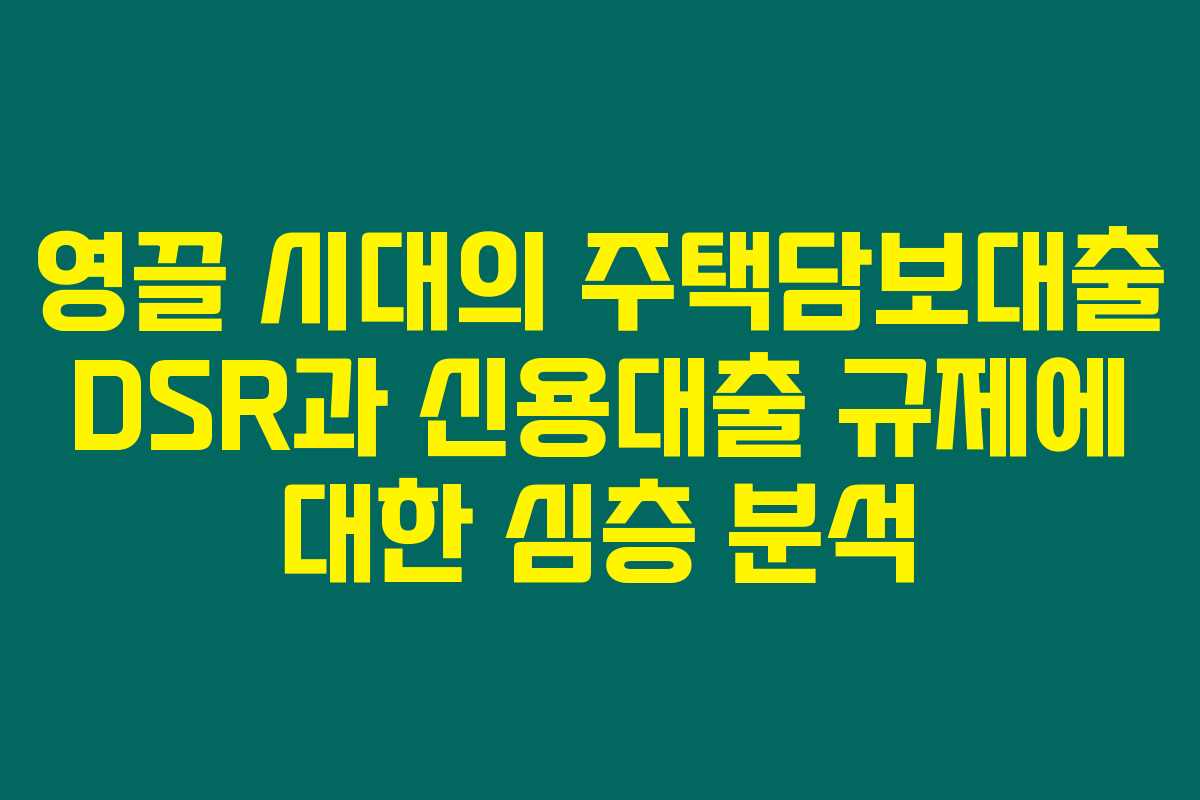 제가 직접 리서치한 바로는, 최근 주택담보대출에서 DSR(총부채원리금상환비율)와 영끌 신용대출 규제가 부동산 시장에 큰 영향을 미치고 있습니다. 이러한 규제를 통해 금융 안정성을 도모하는 한편, 주택 구매에 어려움을 겪는 2030 세대에게는 상당한 부담을 줄 수 있는 요소가 되고 있습니다. 아래를 읽어보시면 이에 대한 보다 자세한 이야기를 확인하실 수 있습니다.