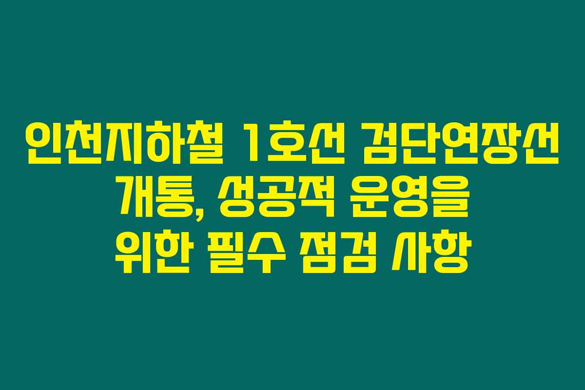 제가 직접 체크해본 바로는 인천지하철 1호선의 검단연장선 개통이 단순한 교통수단의 연장이 아닌 지역 주민들의 생활을 크게 변화시킬 중요한 사건이라는 점입니다. 이 프로젝트는 인천의 교통 인프라를 더욱 확장시켜 수도권의 접근성을 높일 것이며, 이에 따라 여러 가지 준비와 점검이 필수적이라는 생각이 듭니다. 아래를 읽어보시면 검단연장선 개통과 관련된 주요 정보와 기대 효과, 남은 과제 및 해결 방안에 대해 알아보실 수 있습니다.