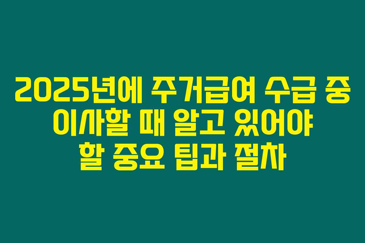 제가 직접 경험해본 결과로는, 주거급여를 수급 중인 상황에서 이사를 하게 된다면 다양한 사항들을 미리 알아두는 것이 중요해요. 이사는 새로운 환경을 제공하지만, 주거급여 관련해서 많은 변수가 기다리고 있기 때문에, 아래를 읽어보시면 이사 후 필요한 변경 신고와 지원금에 대한 정보를 총망라해 보실 수 있습니다.