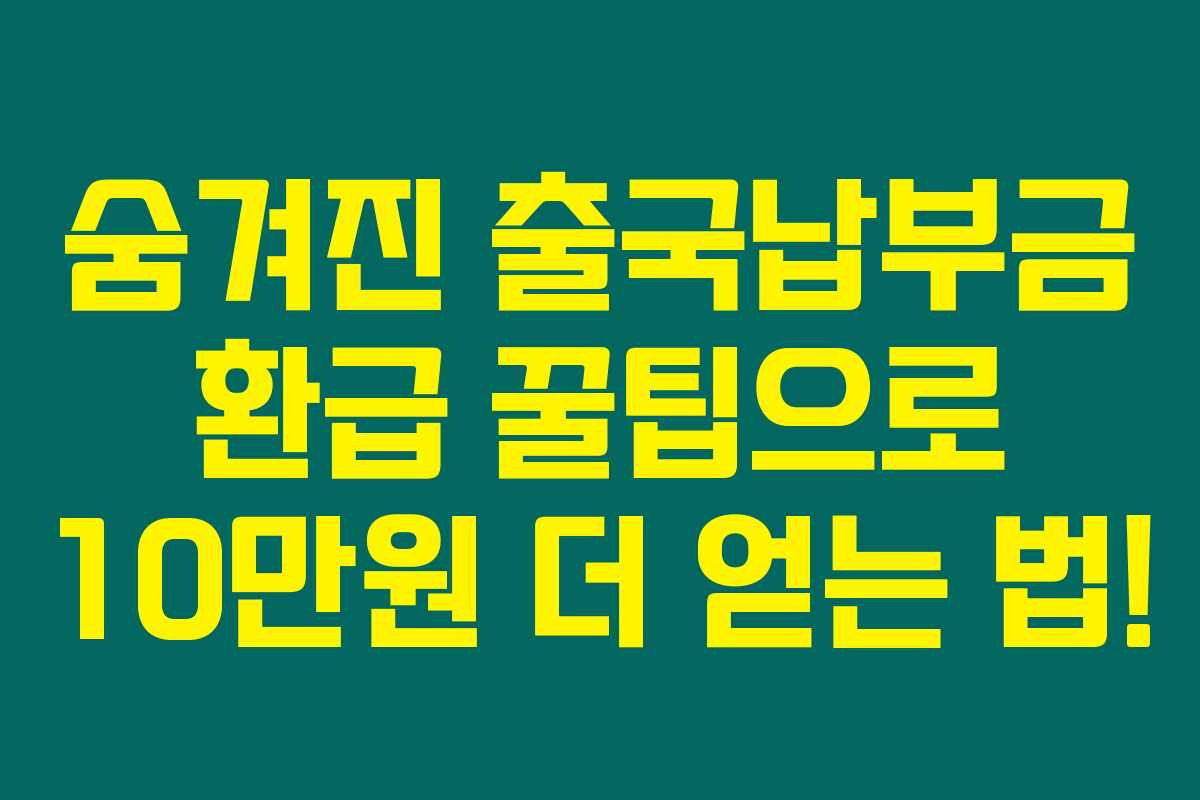 10만원을 더 받을 수 있는 꿀팁을 활용하여 현명하게 출국납부금 환급을 받으시길 바랍니다. 여행 비용 절감은 더 나은 여행을 위한 중요한 요인이니까요. 여러분의 소중한 금액을 꼭 챙기세요!
