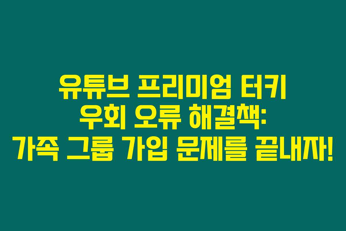 유튜브 프리미엄 서비스를 이용하시면서 가족 그룹에 가입하려다 오류가 발생한 경험이 있으신가요? 많은 분들이 유튜브 프리미엄의 저렴한 요금을 이용하기 위해 터키 쪽으로 우회 설정을 하려고 하지만, 가끔씩 가족 그룹 가입에 여러 가지 어려움을 겪게 되죠. 아래를 읽어보시면 이 문제를 해결할 수 있는 방법과 함께 유용한 정보들을 얻으실 수 있을 거예요.